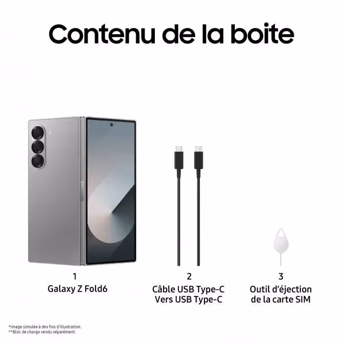 Avec une caméra principale de 50 MP et un téléobjectif 10 MP , vous pouvez capturer des photos nettes et de qualité professionnelle, même en zoomant. La batterie de 4400 mAh vous offre une autonomie suffisante pour une utilisation quotidienne intensive, et la charge rapide vous permet de reprendre votre activité rapidement. Le design élégant en gris donne au Galaxy Z Fold 6 une allure moderne et premium, tandis que sa construction solide garantit une résistance accrue.