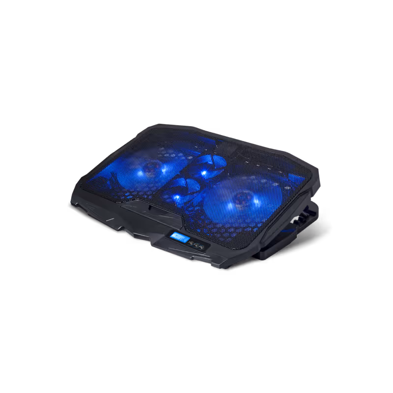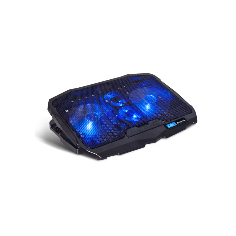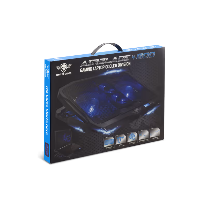Le support de refroidissement Spirit of Gamer AIRBLADE 600 (référence : SOG-VE600) est spécialement conçu pour garantir un refroidissement optimal des ordinateurs portables de 10 à 17 pouces, même lors d’utilisations intensives comme le gaming, le streaming ou le travail multitâche. Grâce à ses quatre ventilateurs performants combinant efficacité et discrétion, il assure une excellente dissipation de la chaleur tout en maintenant un faible niveau sonore de seulement 15 dB(A). Son contrôleur intégré avec écran LCD permet de gérer facilement les 6 vitesses de ventilation, les 3 modes de fonctionnement ainsi que la fonction marche/arrêt. Le rétroéclairage bleu renforce son style gaming moderne. Ergonomique, l’AIRBLADE 600 propose 4 positions de hauteur réglables allant de 10° à 22°, améliorant le confort de frappe et la posture. Sa conception robuste en grille métallique et plastique, ses deux ports USB intégrés et son design noir élégant en font un accessoire fiable, pratique et durable pour tous les utilisateurs exigeants.