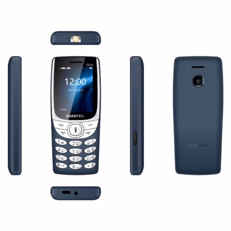 Écran: 2.4" QVGA clair et lisible - Résolution: 240 x 320 pixels - Capacité batterie: 1800 mAh - Stockage extensible via carte microSD (jusqu'à 16 Go) - Appareil Photo: 0.08 MP - Lampe torche - Mp3, Mp4 player - Radio FM (sans fil) - Connecteurs: Port USB-C | Port Jack 3.5 mm - Dual SIM - Compact et léger - Couleur: Bleu Foncé - Garantie: 1 an