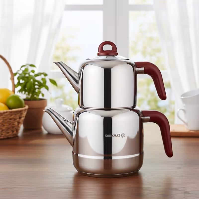 Théière KORKMAZ Hera Rouge A048-02 1.1L/1.9L - Inox 2