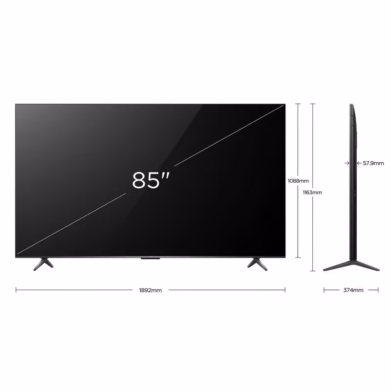 Avec sa connectivité complète incluant Wi-Fi et Bluetooth 5.4, ses ports 1 x USB 2.0 et 1 x USB 3.0, son design élégant en Noir, ses dimensions avec support 1890 x 1161 x 372 mm, son poids de 33,3 kg, et sa garantie 2 ans, cette TV grand format allie performance, technologie avancée et élégance moderne.