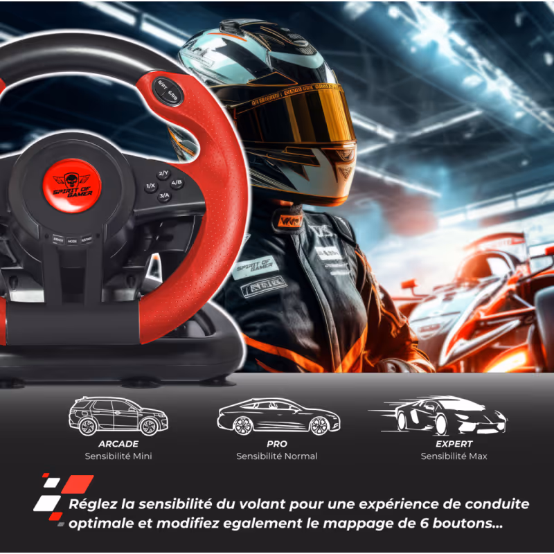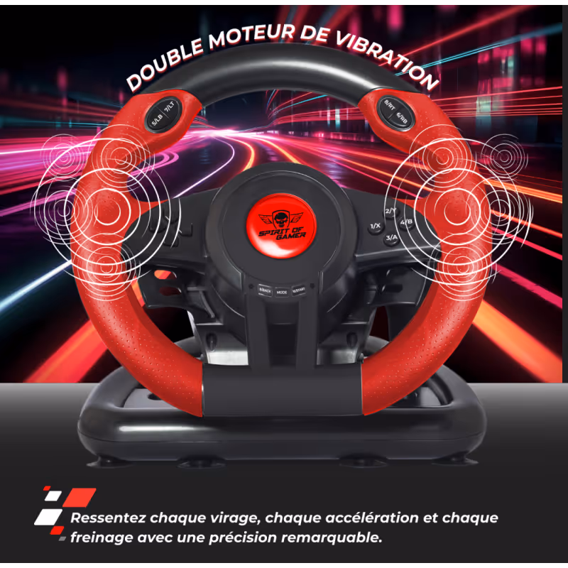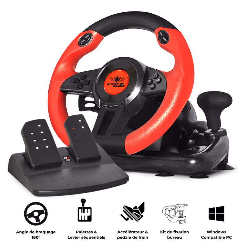 Le Spirit Of Gamer Race Wheel Pro1 est un volant conçu pour offrir aux joueurs une expérience de conduite immersive, réaliste et précise. Ses fonctionnalités et sa conception le rendent idéal pour les passionnés de jeux de simulation de course.