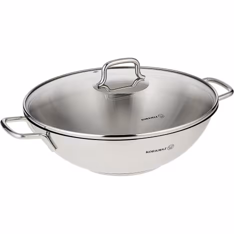 Wok Korkmaz Wok 28 cm est un ustensile polyvalent et performant, idéal pour saisir, faire sauter ou mijoter vos plats préférés. Conçu en acier inoxydable 18/10 Cr-Ni, il offre une excellente résistance et une grande durabilité. Sa construction tri-ply associe un noyau en aluminium encapsulé à l’acier inoxydable pour garantir une répartition uniforme de la chaleur. Avec sa taille de 28 x 8,5 cm et son couvercle inclus, il est parfait pour une cuisson maîtrisée. Ses poignées ergonomiques cool touch en acier inoxydable assurent confort et sécurité, tandis que ses surfaces extérieures protègent durablement leur brillance. Passe au lave-vaisselle et compatible avec toutes les cuisiniières, y compris l’induction, il allie praticité, élégance et haute performance.