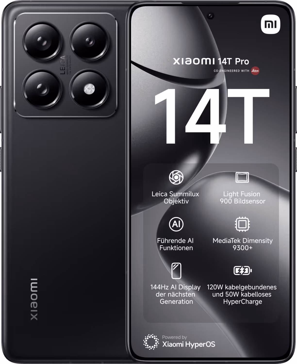 - Le Xiaomi 14T Pro arbore une finition Noir Titane élégante et moderne, offrant un look premium avec une texture résistante aux traces de doigts et une prise en main agréable.
