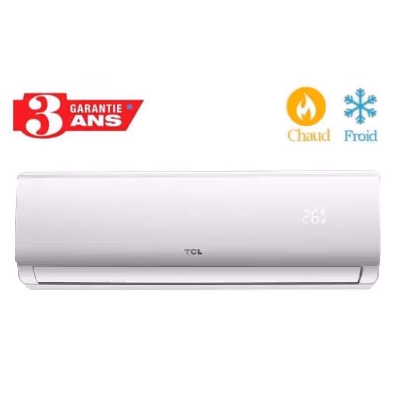 Climatiseur Inverter TCL Tropicalisé 12000 BTU est une solution idéale pour assurer un confort thermique optimal toute l’année grâce à son mode Chaud & Froid. Conçu comme split mural, il est adapté aux climats chauds grâce à la classe climatique T3, garantissant un fonctionnement fiable même à haute température. Avec une capacité de 12000 BTU, il est parfaitement adapté pour climatiser des espaces de 15 à 23 m², offrant un refroidissement rapide et efficace. Fonctionnant avec le réfrigérant R410a, il assure de bonnes performances énergétiques. Ce climatiseur se distingue également par son fonctionnement silencieux, avec un niveau de bruit intérieur de 41/34/27 dB et 50 dB à l’extérieur, assurant un confort acoustique optimal. Son design élégant en couleur blanche et ses dimensions compactes (808 × 292 × 208 mm pour l’unité intérieure et 777 × 290 × 498 mm pour l’unité extérieure) facilitent son intégration dans tout type d’espace. Il est enfin couvert par une garantie de 3 ans, gage de fiabilité et de durabilité.
