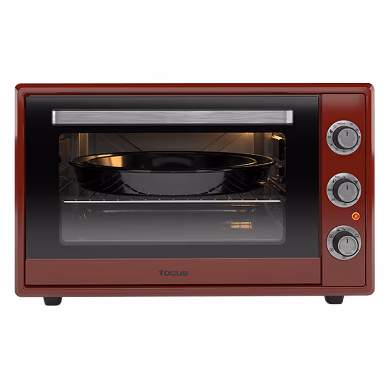 Four Électrique Focus F-60R allie puissance et grande capacité avec ses 2000 W et 60 litres de volume, idéal pour cuisiner pour toute la famille. Il dispose d’une température réglable jusqu’à 250 °C, d’une minuterie mécanique de 90 minutes, 6 fonctions de cuisson dont la chaleur tournante et la fonction yaourt, ainsi que d’une cavité émaillée pour un entretien facile. Équipé d’une lampe intérieure, d’une résistance inox, d’un double vitrage et livré avec un grill, un plateau rectangulaire et 2 plateaux ronds, ce four robuste et pratique mesure 60 x 33,9 x 44,8 cm et est garanti 1 an.