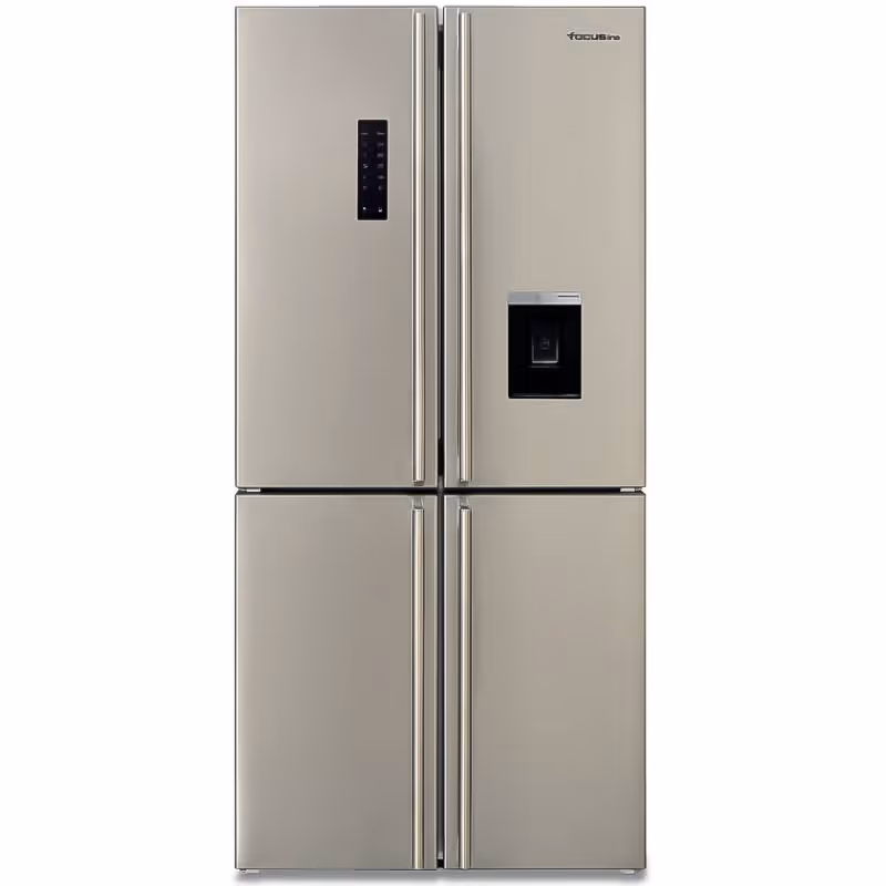 Réfrigérateur Side-By-Side 4 portes FOCUS avec système NoFrost, grande capacité de 620 L brut et éclairage LED. Économe (classe A+) et silencieux (41 dB), il inclut un distributeur d’eau/glace, bac à glaçons, clayettes en verre et finition inox moderne. Fonctionnel et performant avec classe climatique ST, il combine espace, confort et style. Dimensions : 179 × 84 × 69 cm (H × L × P). Garantie 2 ans.